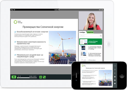 iSpring Suite 8 позволяет создавать электронные курсы в PowerPoint с последующим сохранением в веб-формат. Благодаря поддержке HTML5, материалы, разработанные в iSpring Suite, доступны для просмотра на любых устройствах: компьютерах, ноутбуках, планшетах, iPad, iPhone, Android и Windows-устройствах.