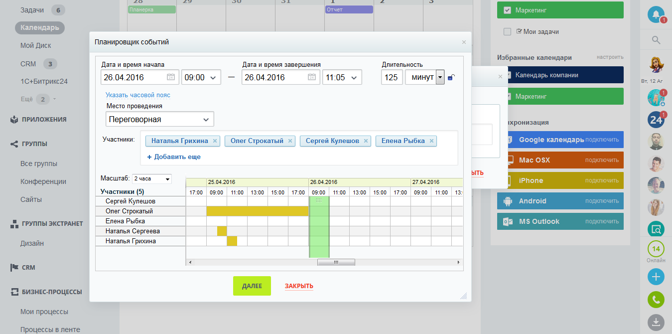 - Интеграция с 1С, Microsoft, Google, Apple