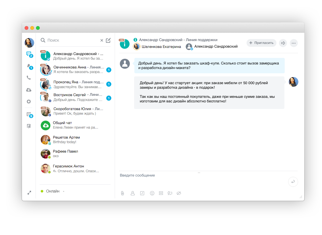 «Облачный» сервис для компании до 24 сотрудников. Включает базовый функционал и расширенные возможности для управления задачами и проектами, ведения базы клиентов, разговоров с клиентами и записи звонков, обработки заказов из интернет-магазина в CRM, совместной работы с документами и другие полезные инструменты.Команда (5 490 руб/мес)